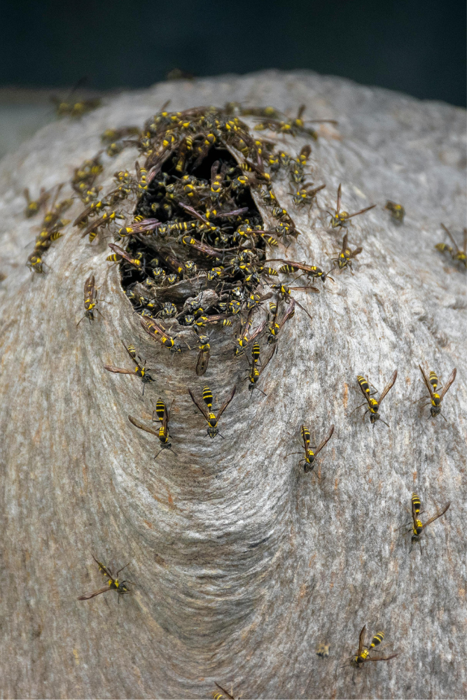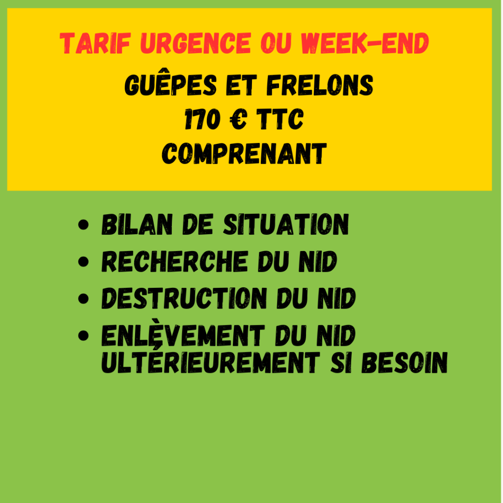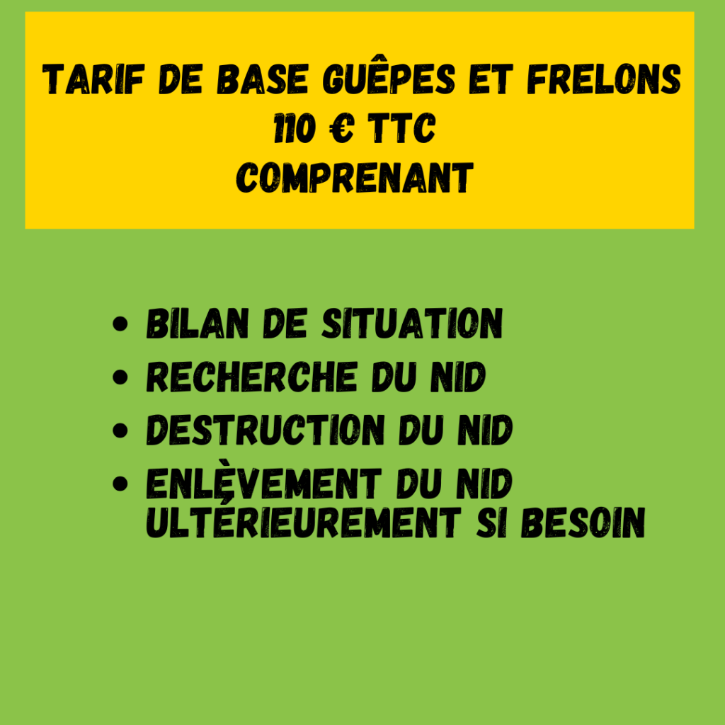 POUR les nids de frelons ou guêpes, le tarif de base comprend une intervention jusqu’a 9 m de hauteur.